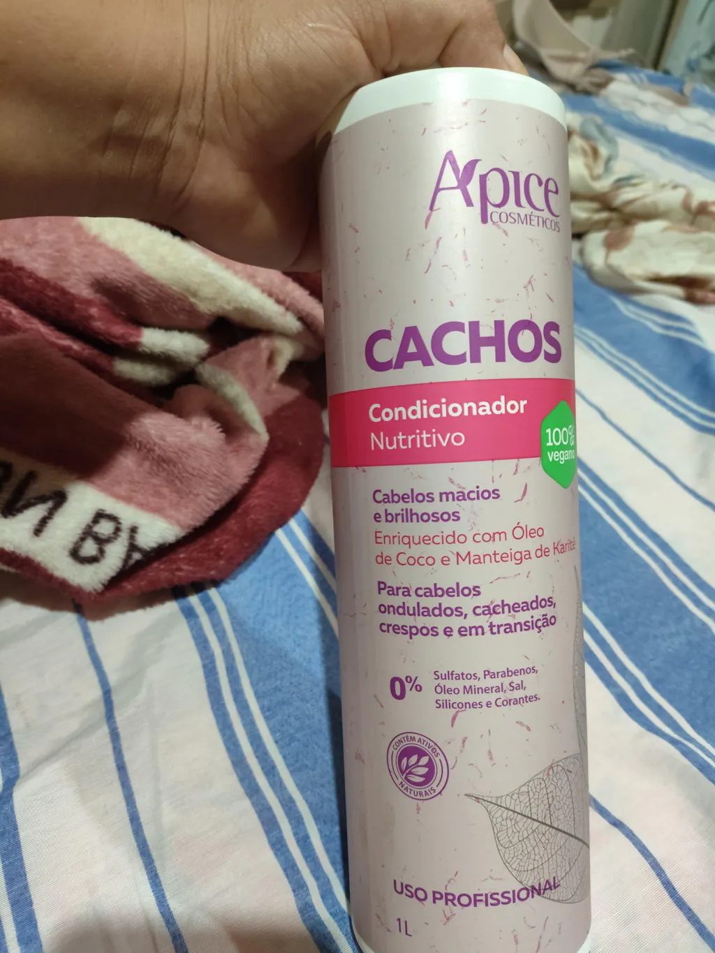 - Após lavar os cabelos com o Shampoo Cachos, aplique o Condicionador Cachos no comprimento dos fios